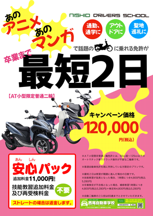 AT小型限定普通二輪免許を最短2日間で取っちゃおう!キャンペーン!