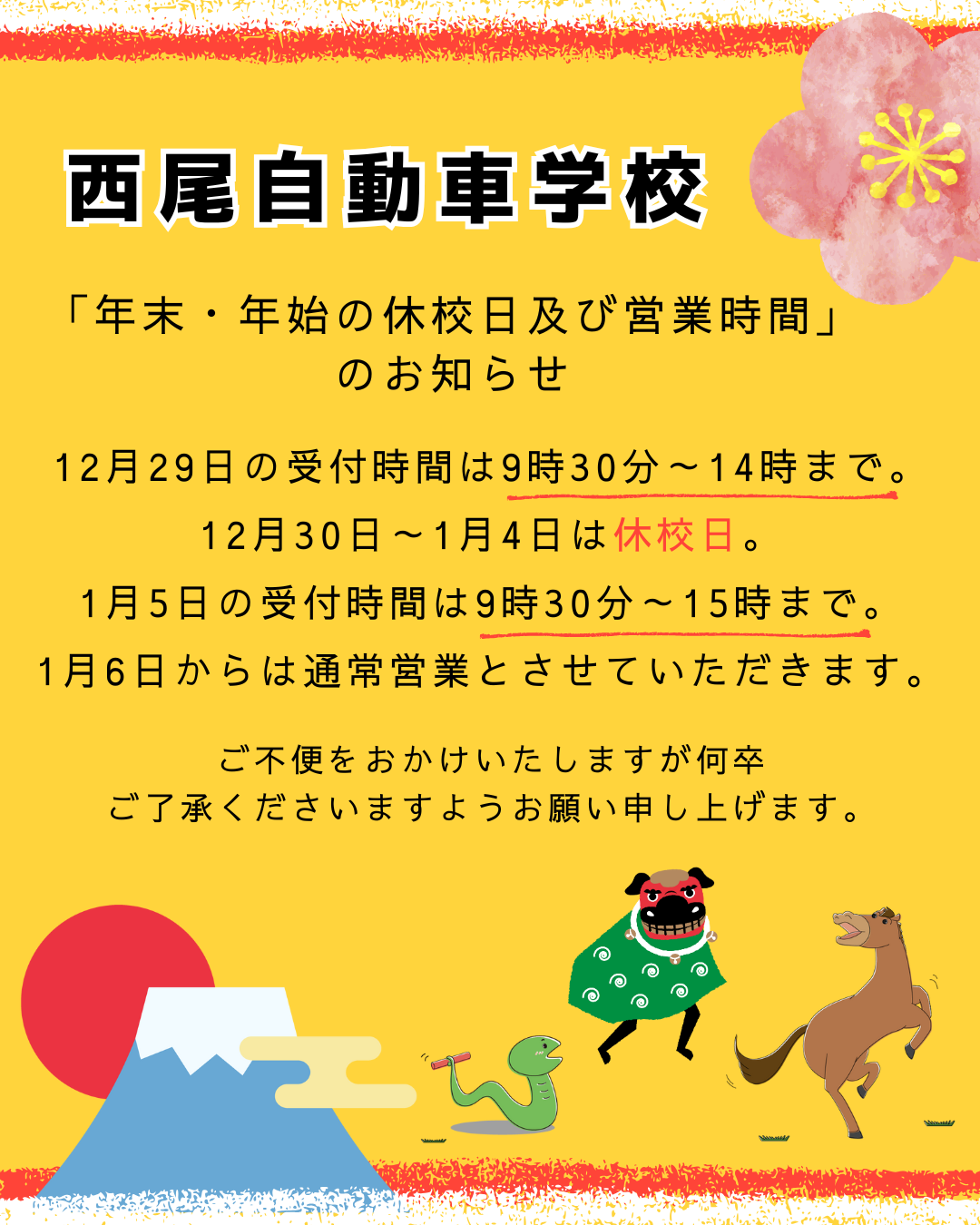 ゴールデンウイーク営業時間及び入校手続きについて